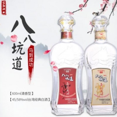 首页 > 供应产品 > 台湾八八坑道白酒马到成功45度58度陈年高粱酒600ml清香型酒水